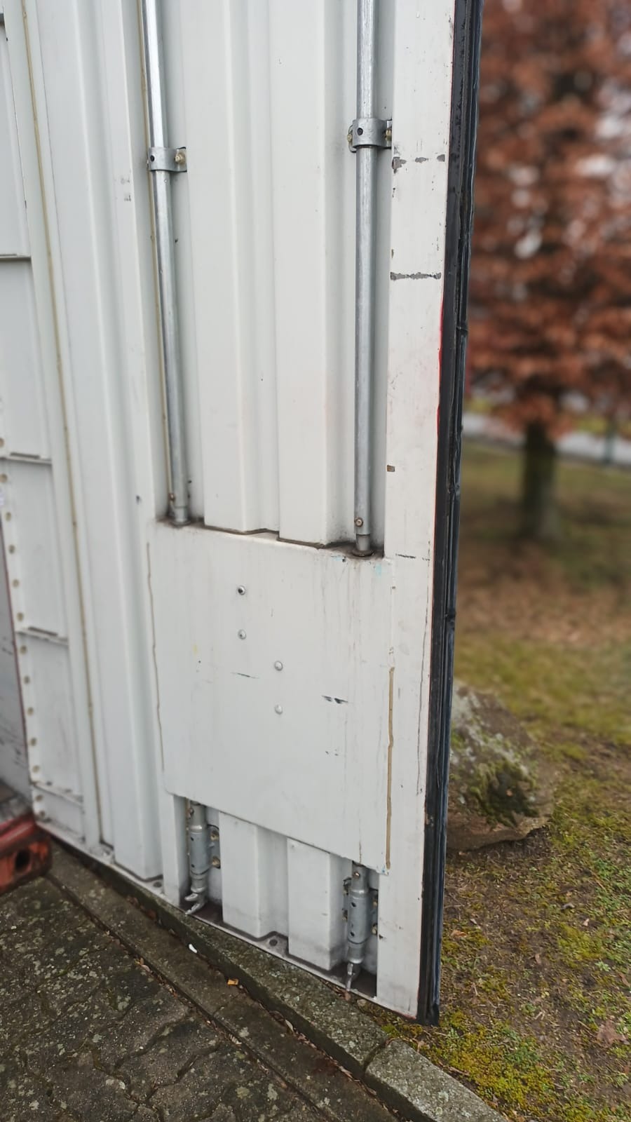 Der Container ist wind- und wasserdicht (cargo worthy), verfügt über leichtgängige Doppelflügeltüren mit stabilen Verriegelungsstangen sowie einen robusten Holzfußboden aus ca. 28 mm starken, beschichteten und wasserbeständigen Sperrholzplatten.