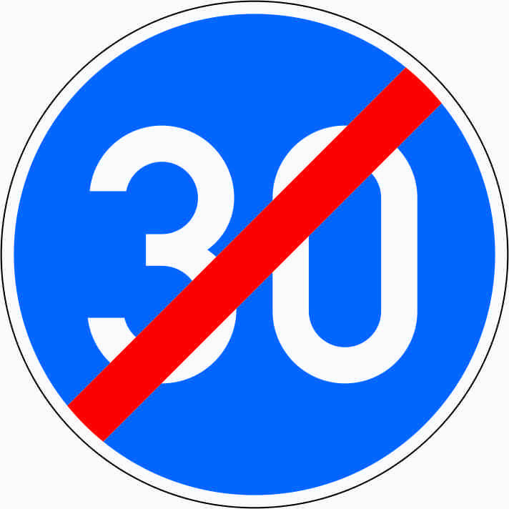 Verkehrszeichen 279-.. „Ende der vorgeschriebenen Mindestgeschwindigkeit“: Das Verkehrszeichen weist einen Fahrzeugführer daraufhin, dass das Verbot, dass er nicht langsamer als mit der angegebenen Mindestgeschwindigkeit fahren darf, sofern nicht Straßen-, Verkehrs-, Sicht- oder Wetterverhältnisse dazu verpflichten, aufgehoben ist.