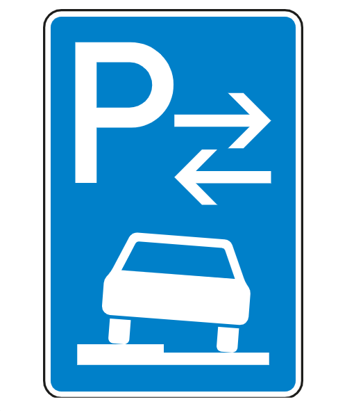 Verkehrszeichen 315-53 „Parken auf Gehwegen halb in Fahrtrichtung links Mitte“: Fahrzeuge unter 2,8 t dürfen mit dieser Beschilderung auf dem Gehweg parken. Das Zeichen gibt dabei vor, wie das Fahrzeug geparkt werden darf. Die Pfeile zeigen den Anfang und das Ende des Parkbereiches an. Die Parkerlaubnis kann mittels Zusatzzeichen beschränkt oder gebührenpflichtig sein.