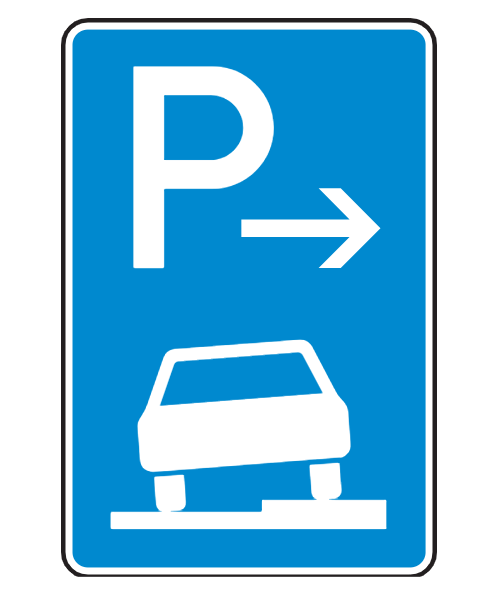 Verkehrszeichen 315-57 „Parken auf Gehwegen halb in Fahrtrichtung rechts Ende“: Fahrzeuge unter 2,8 t dürfen mit dieser Beschilderung auf dem Gehweg parken. Das Zeichen gibt dabei vor, wie das Fahrzeug geparkt werden darf. Die Pfeile zeigen den Anfang und das Ende des Parkbereiches an. Die Parkerlaubnis kann mittels Zusatzzeichen beschränkt oder gebührenpflichtig sein.