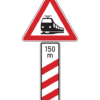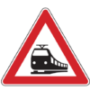 Verkehrszeichen 156-10 „Bahnübergang mit dreistreifiger Bake, Aufstellung rechts“: Der Bahnübergang wird durch Gefahrzeichen (VZ 151) und einer dreistreifigen Bake angezeigt, wobei die Streifen der Baken zur Fahrbahnseite geneigt sind. Außerhalb von Ortschaften sind die Zeichen für beide Seiten anzuordnen. Der Bahnübergang befindet sich in 240 m Entfernung.