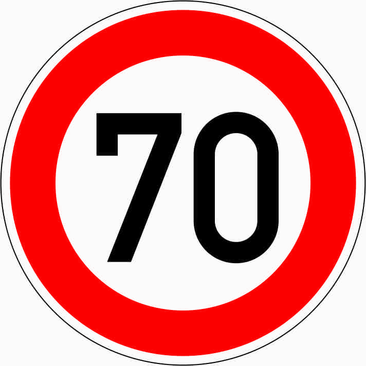 Verkehrszeichen 274-70 „Zulässige Höchstgeschwindigkeit“: Mit diesem Zeichen weisen sie auf eine maximale Geschwindigkeitsbegrenzung für Fahrzeuge aller Art hin. Fahrzeugführer dürfen nicht schneller, als mit der ausgewiesenen Höchstgeschwindigkeit fahren. Das Verbot kann durch Verkehrszeichen 278 aufgehoben werden.